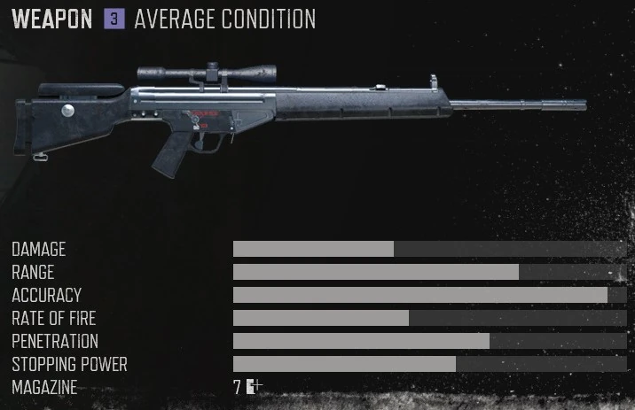 A military-grade semi-automatic sniper rifle for taking precise shots at a greater distance. In-game description.