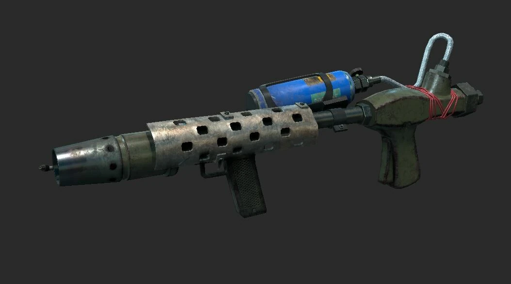 - There is no reload animation for this weapon, except enemy NPCs sometimes reload it. Pressing the reload button resets the fuel meter for the weapon (under the disguise of a durability meter acting as a fuel percentage).