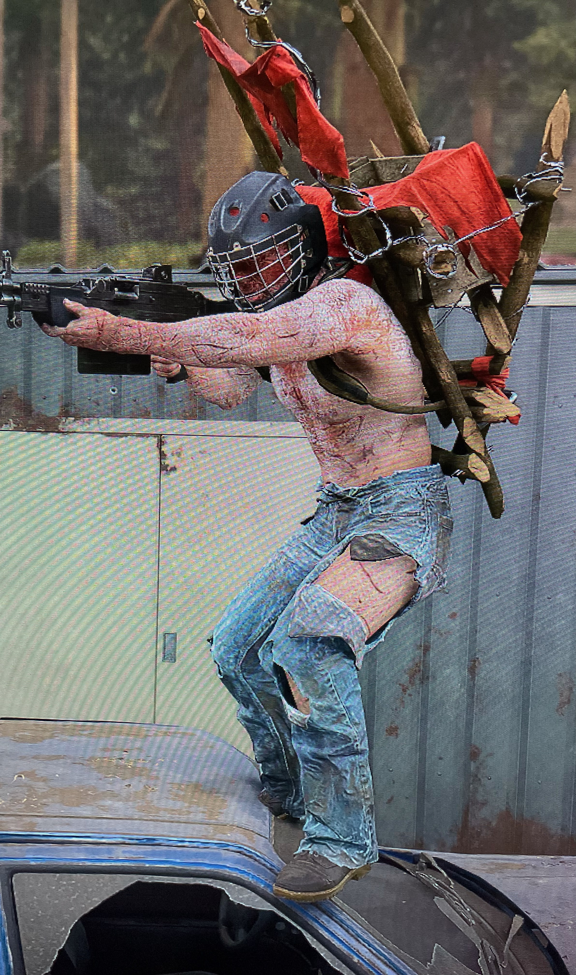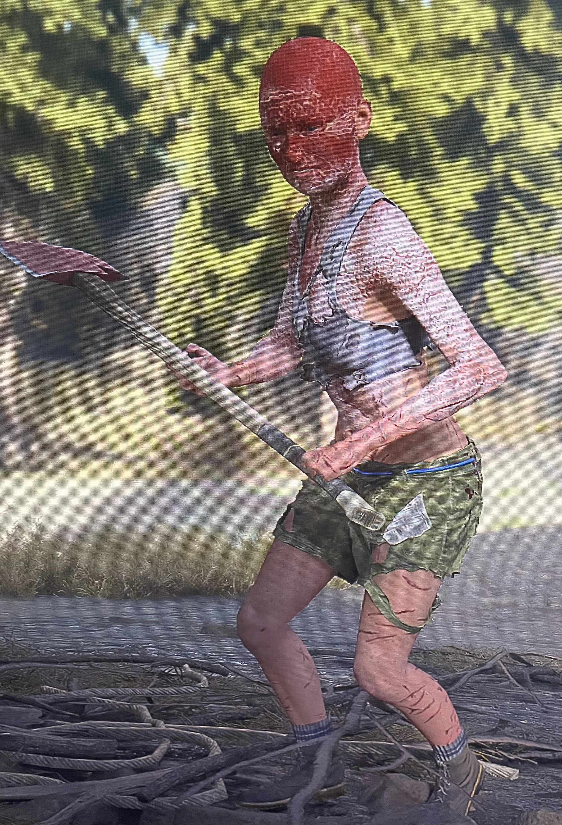 Additionally, this can be seen in their base - the Iron Butte Golf Resort, as well as smaller Ripper ambush camps in Iron Butte and the Belknap. They are built like Freaker nests, with twigs, rubble, and primitive torches, made with wood and barbed wire, around the human structures. They also do not use full ballistic vests like Marauders or the Militia, instead using PCP in order to boost their bodies and dull their reaction to pain. This saves resources, but at the cost of making their followers incredibly reckless.