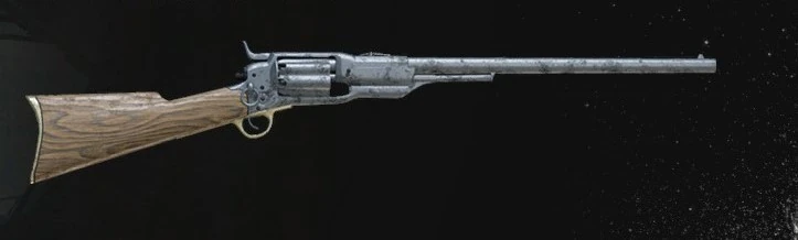 The Cowboy is a primary weapon. It is an unusual antique rifle that has a revolver magazine.